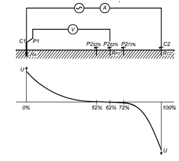 ?接地體和電壓探頭P2(52%)之間的距離= C2的距離×0.52